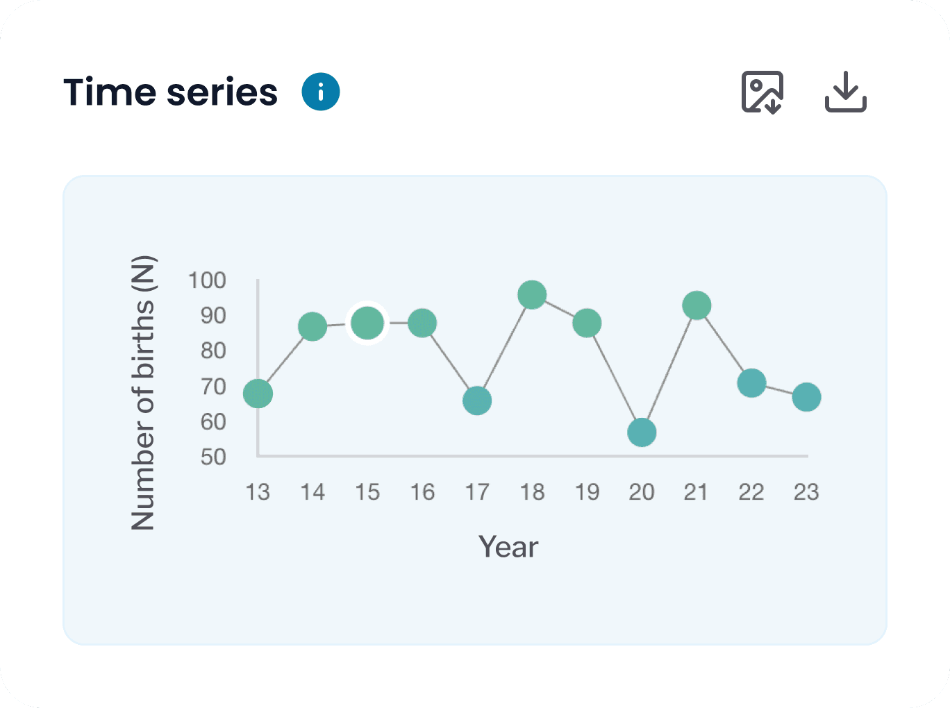 The time series graph tracks indicator values for the selected area across the years for which data is available. Hovering the cursor over any time points in the graph will display the results for that year.
